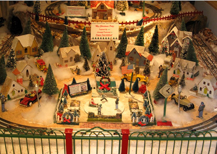 Note from Editor: Contributor Jack Ahearn is a putz house fan as well as a tinplate train fan. He came to know the late “Papa” Ted Althof through their common love of cardboard Christmas “putz” houses and toy trains. When Ted passed away in October, 2012, several putz house collectors were trying to decide what would be the most appropriate way to memorialize Ted’s work. Eventually, the idea of a putz (early-to-mid-1900s Christmas) village was accepted, and Jack volunteered to get it started. By now (February, 2013) Jack has a very nice tribute assembled, and he is anxious to share it with fellow hobbyists. - Paul Race, CardboardChristmas.com
