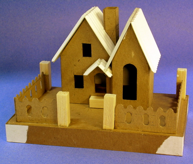 I hope everyone is enjoying our early spring weather. Over the years I have had customers ask me to send them dimension of certain putz houses that they would like to make. Between Linda and I we have well over 3000 houses. It would be hard to ask me to furnish measurements of a house that we don't have! LOL With that said, these two photos show the work that I put into producing decent measurements for reproduction purposes. After making the sixth Blueprint sheet it dawned on me that not everybody has the skill or the time to convert these drawings into a finished product. As long as I was taking all this time why don't I use it more productively? From now on I will be translating these dimension into Kit forms. These kits will come complete with all materials needed to make an exacting duplicate of a vintage Putz House. (excluding Coconut due to color choices). I have included 2 of 4 Kit pages to show the direction I'm going. Please give me as much feedback as you like. I will be working out details as I experiment. I really don't want to have to type every step by step instructions so I think this might be "Not for the inexperienced model builder"?