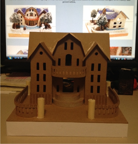 This one also has a blue sand around the base of the house, I thought it was painted but the sand is actually blue. I was lucky to find out that Pete owns this original house and he gave me serveral demsions and close up pics.